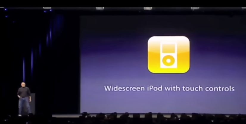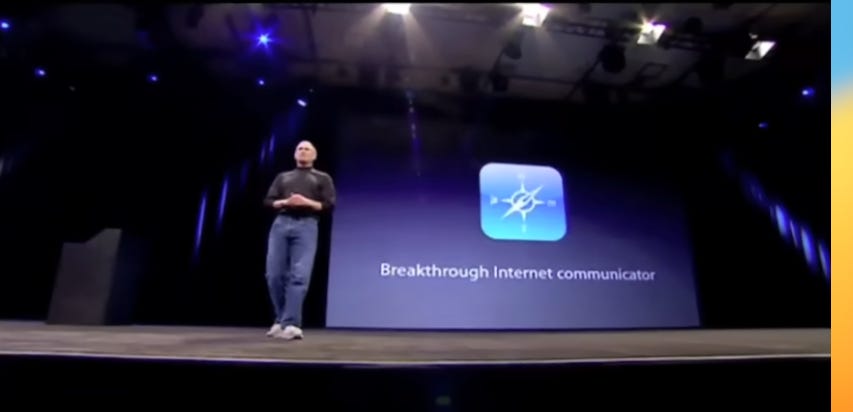 Here is an example from Jobs’ presentation. He used an incredibly simple format with each slide only communicating one idea.